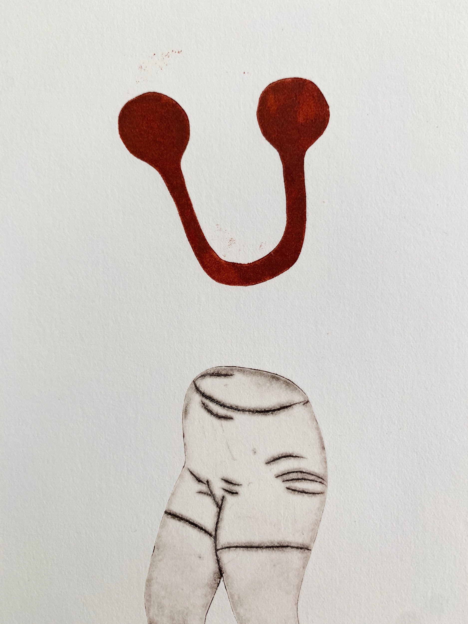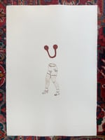 Hand printed 1/5. Like a dry point but I've used plastic and cardboard instead of coppar so I can cut shapes. Printed on heavy duty paper for etching.